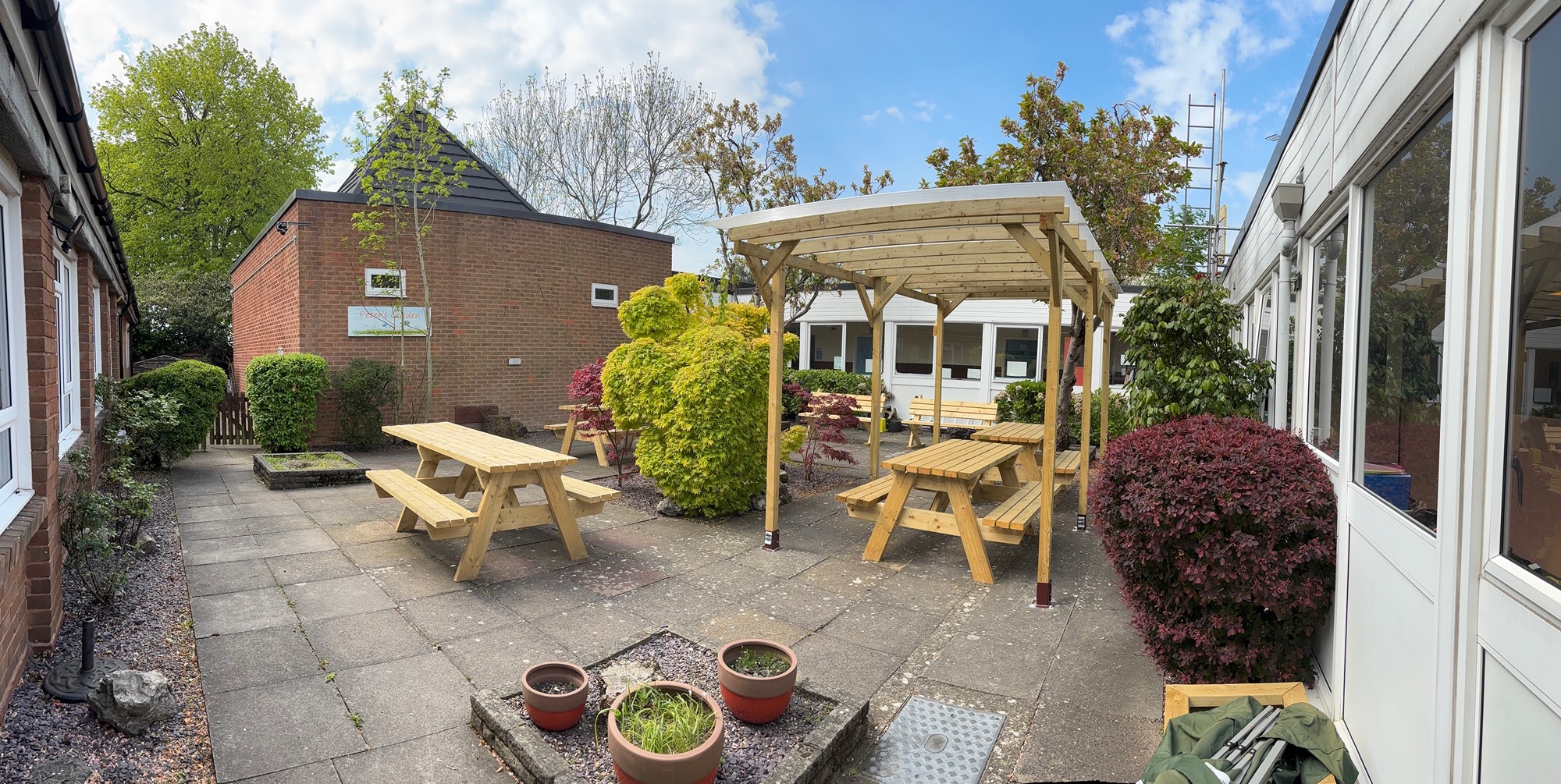 Anyone who has visited the centre in the last few weeks will have seen that the quad area has also had a massive refurb with all new benches, a covered gazebo, along with some fresh planters and a brand-new silver birch tree to replace the olive tree that blew down in the recent storms.